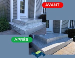 Resurfaçage escalier 4-6 marches N/A (équipement requis) 2 000$ - 4 500$ Pro: 10-15 ans